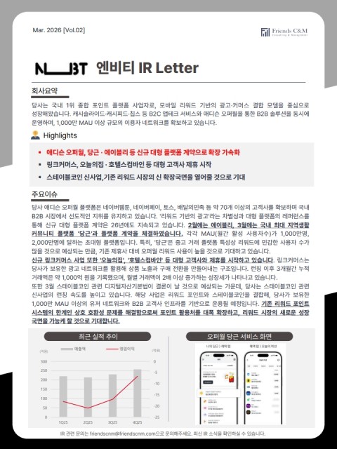 [엔비티] 3월 IR Letter